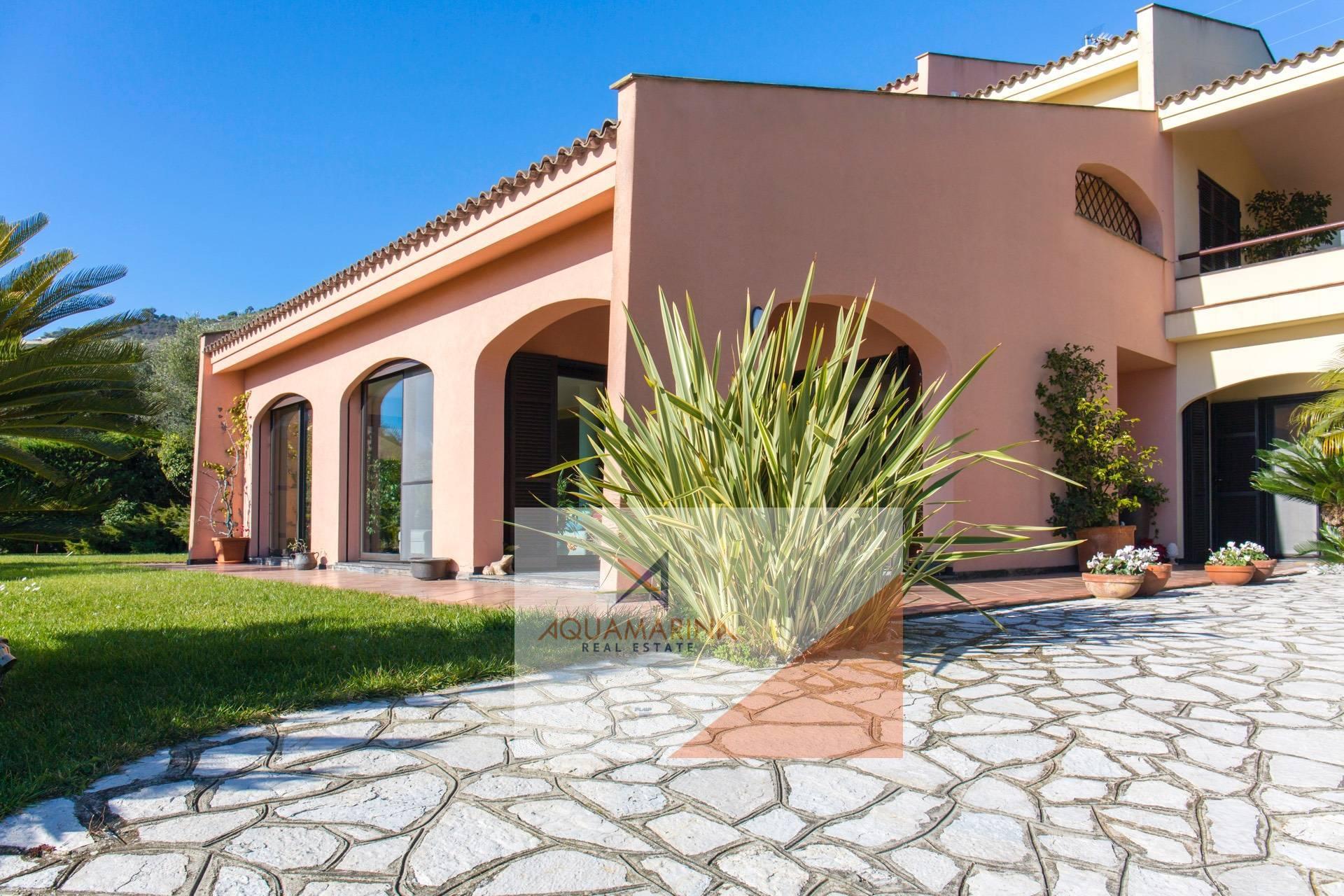 Вилла окружена садом площадью 1600 кв.м., в котором есть бассейн, двойной гараж и удобная крытая и открытая парковка.
