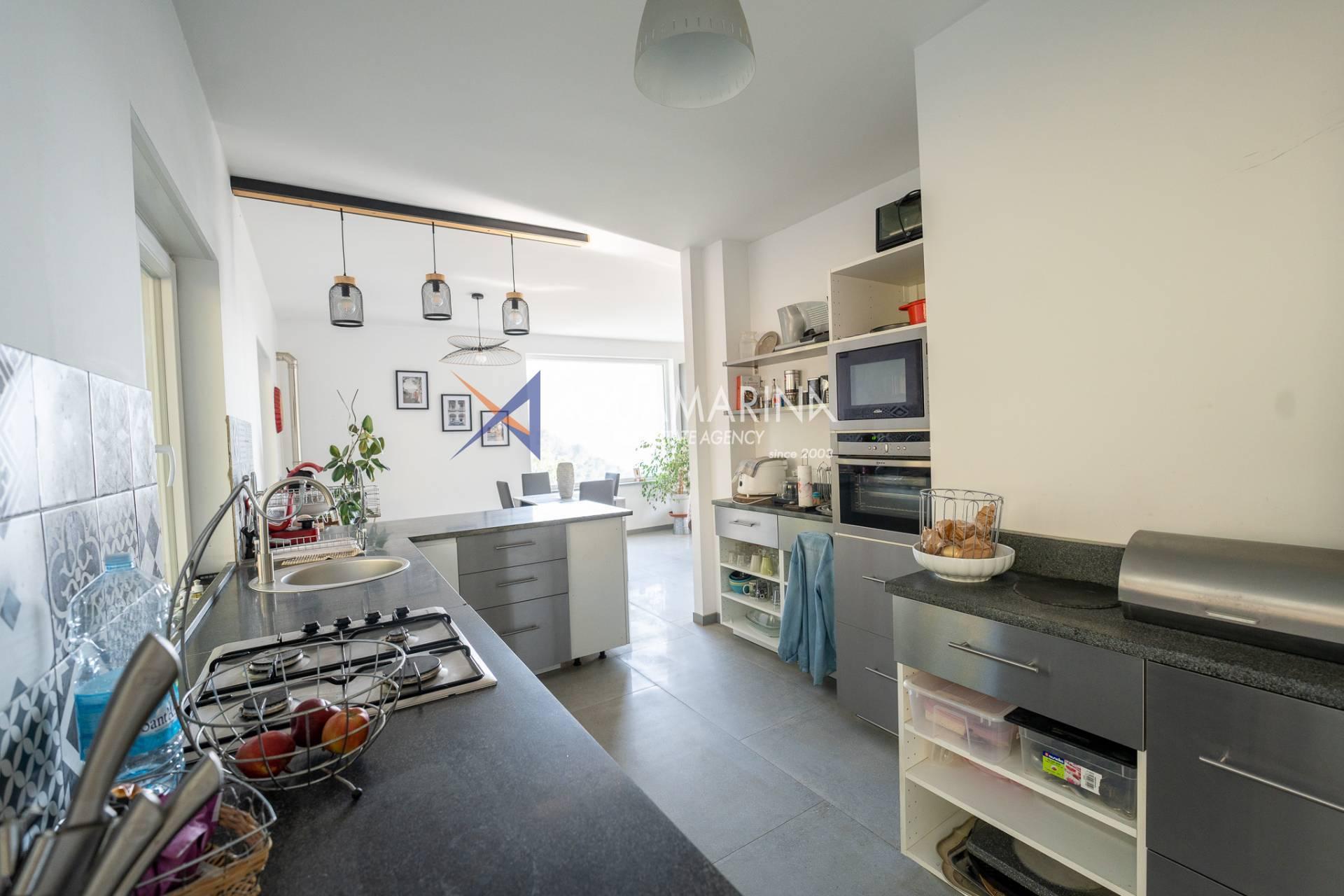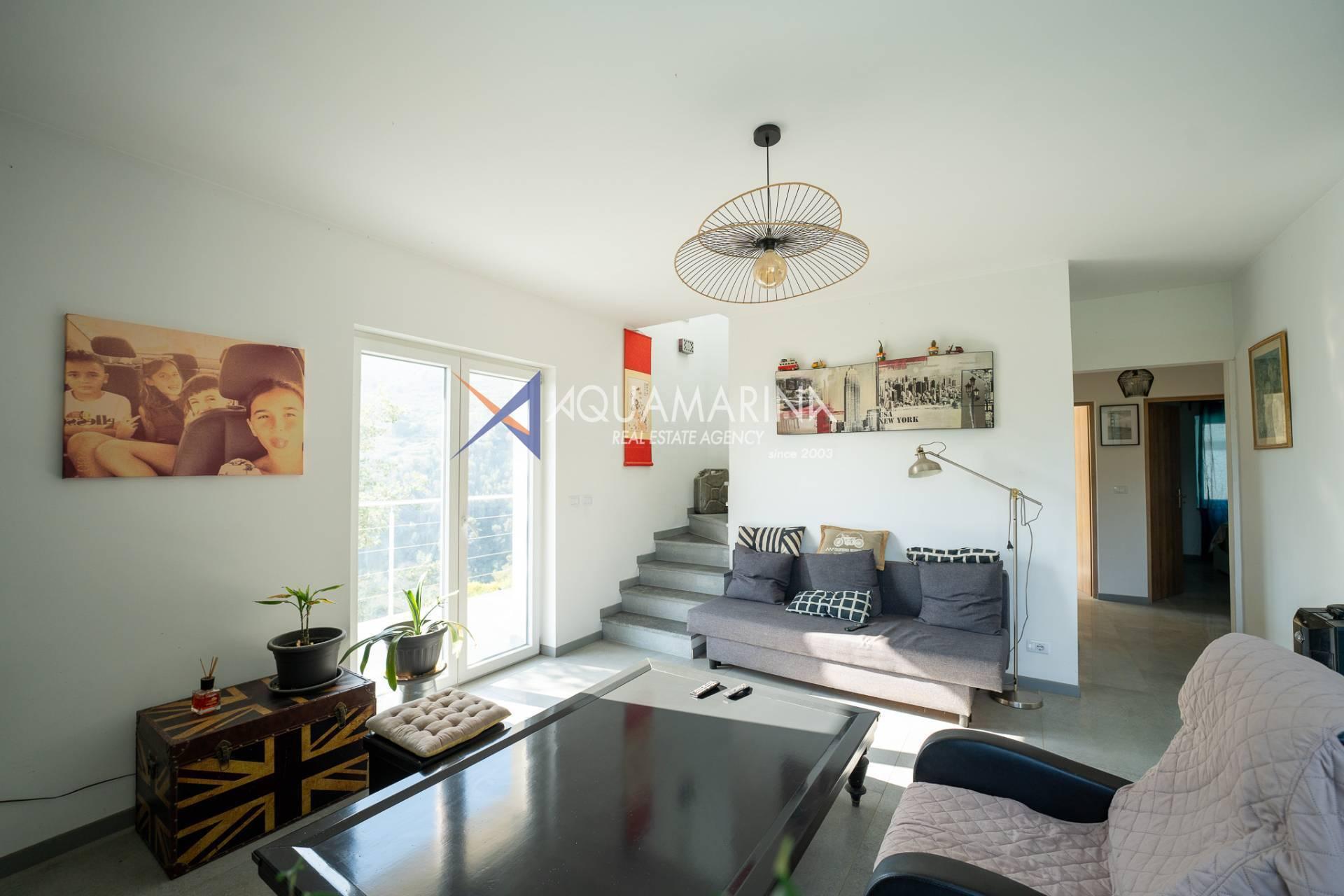 Себорга, в нескольких минутах от города, в жилом районе, окруженном зеленью и абсолютной тишиной, мы предлагаем на продажу недавно построенную двухэтажную виллу площадью около 220 кв.м., состоящую из: на первом этаже очень большой гараж/подвал и квартира для друзей; на первом этаже гостиная с большими окнами с видом на море и кухня, две спальни и ванная комната, на втором этаже две спальни с ванной комнатой. Сад с летней кухней и надземным бассейном