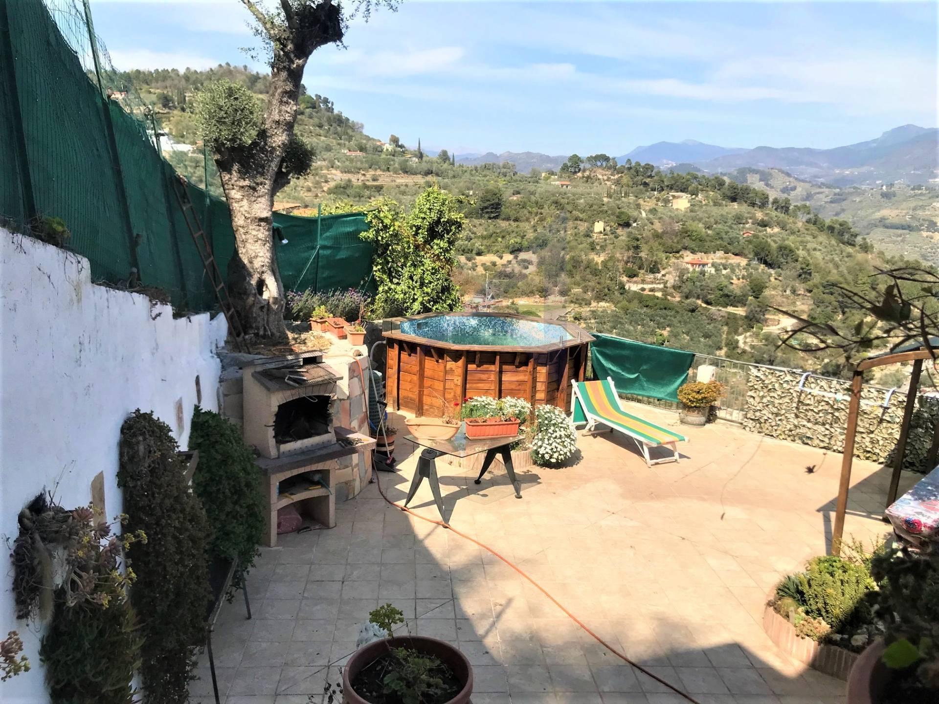 Кампороссо, мы предлагаем на продажу отдельный дом площадью около 130 кв.м., окруженный зеленью, в тихом районе с панорамным видом на долину и море.