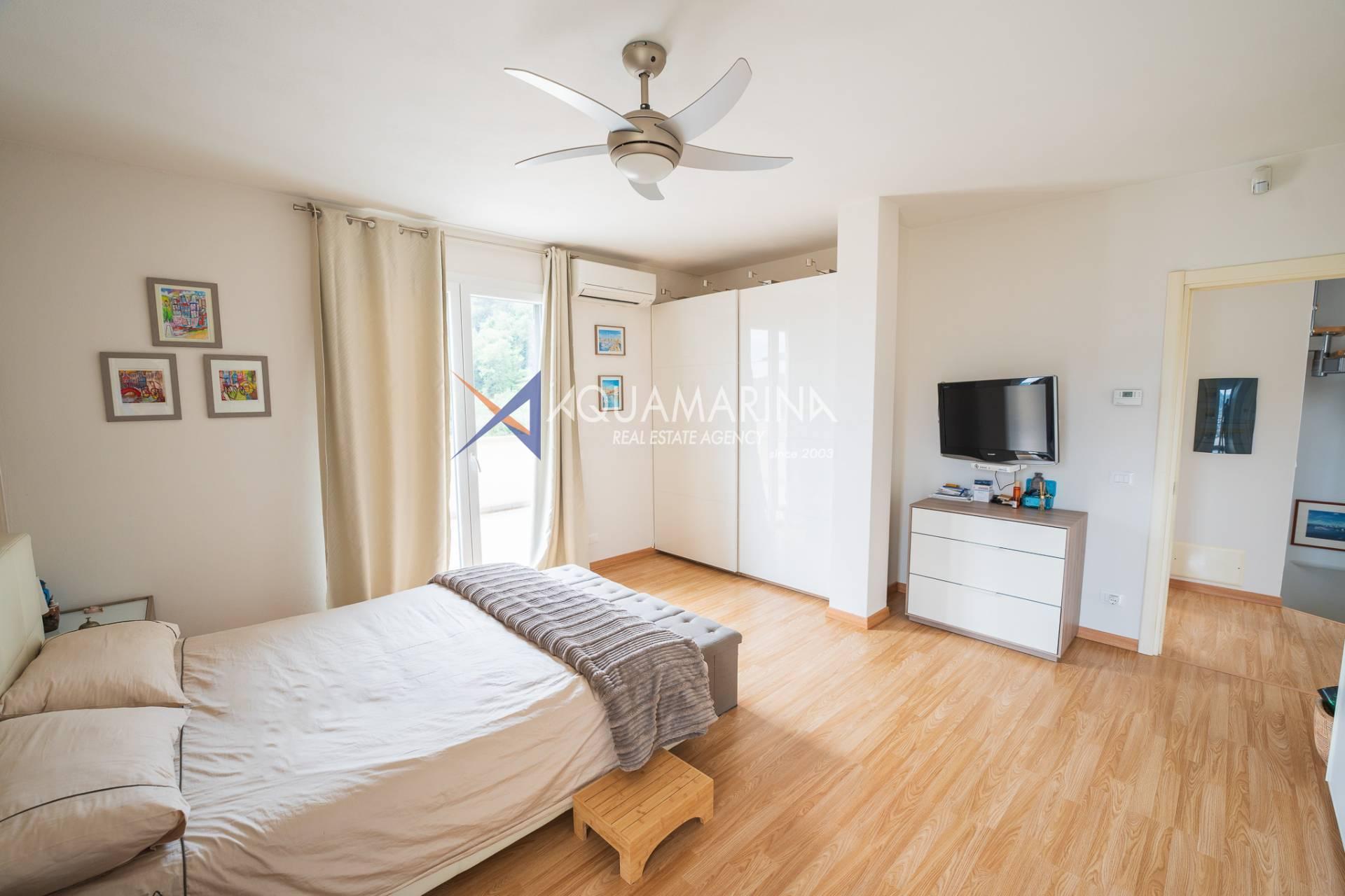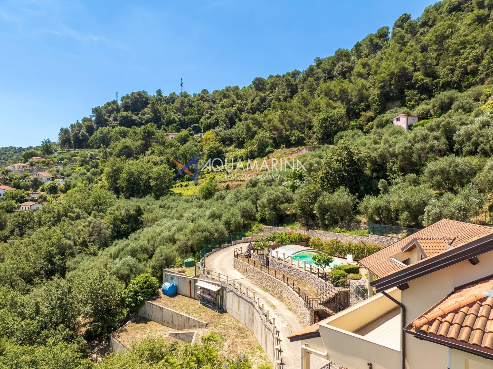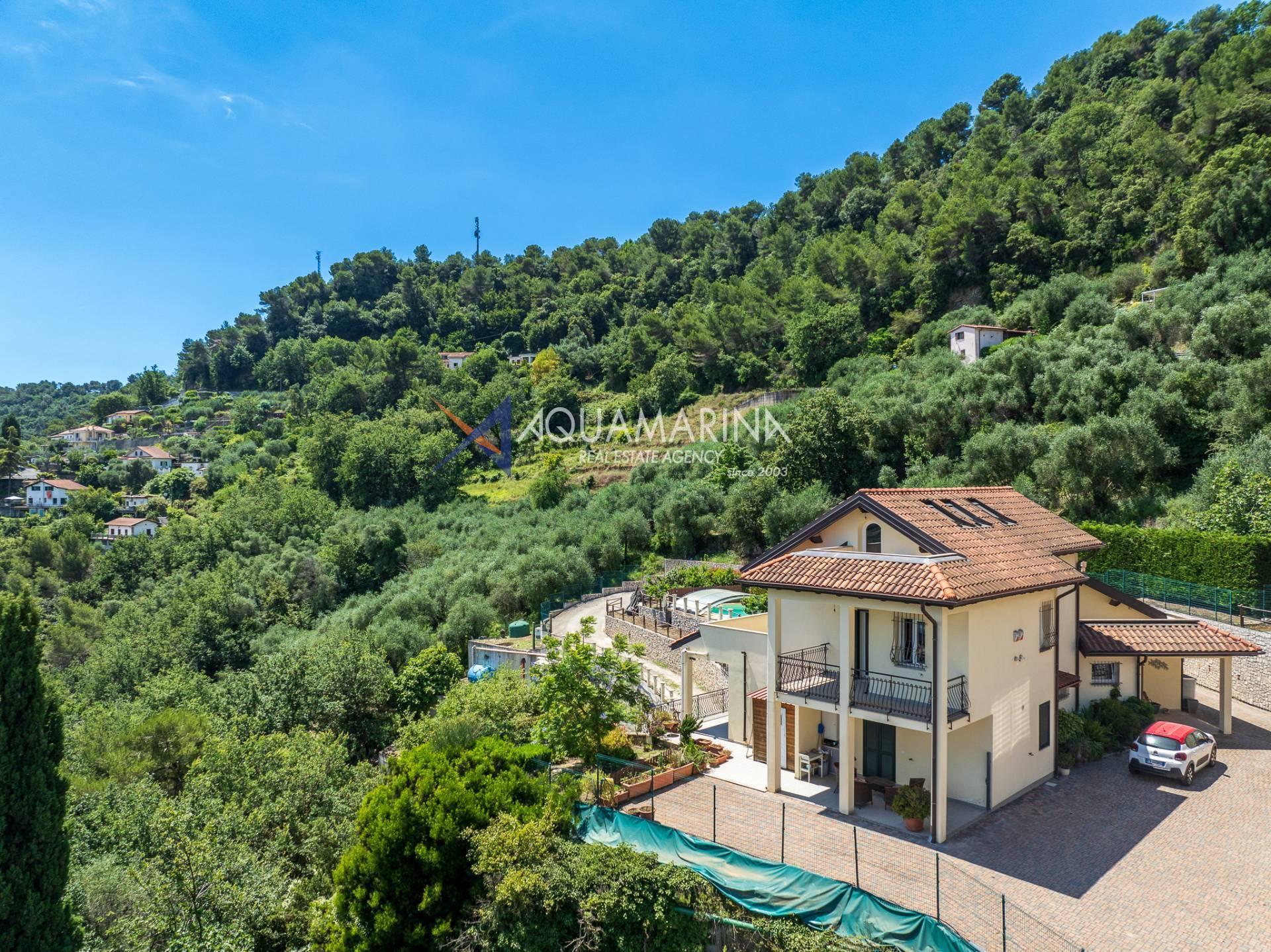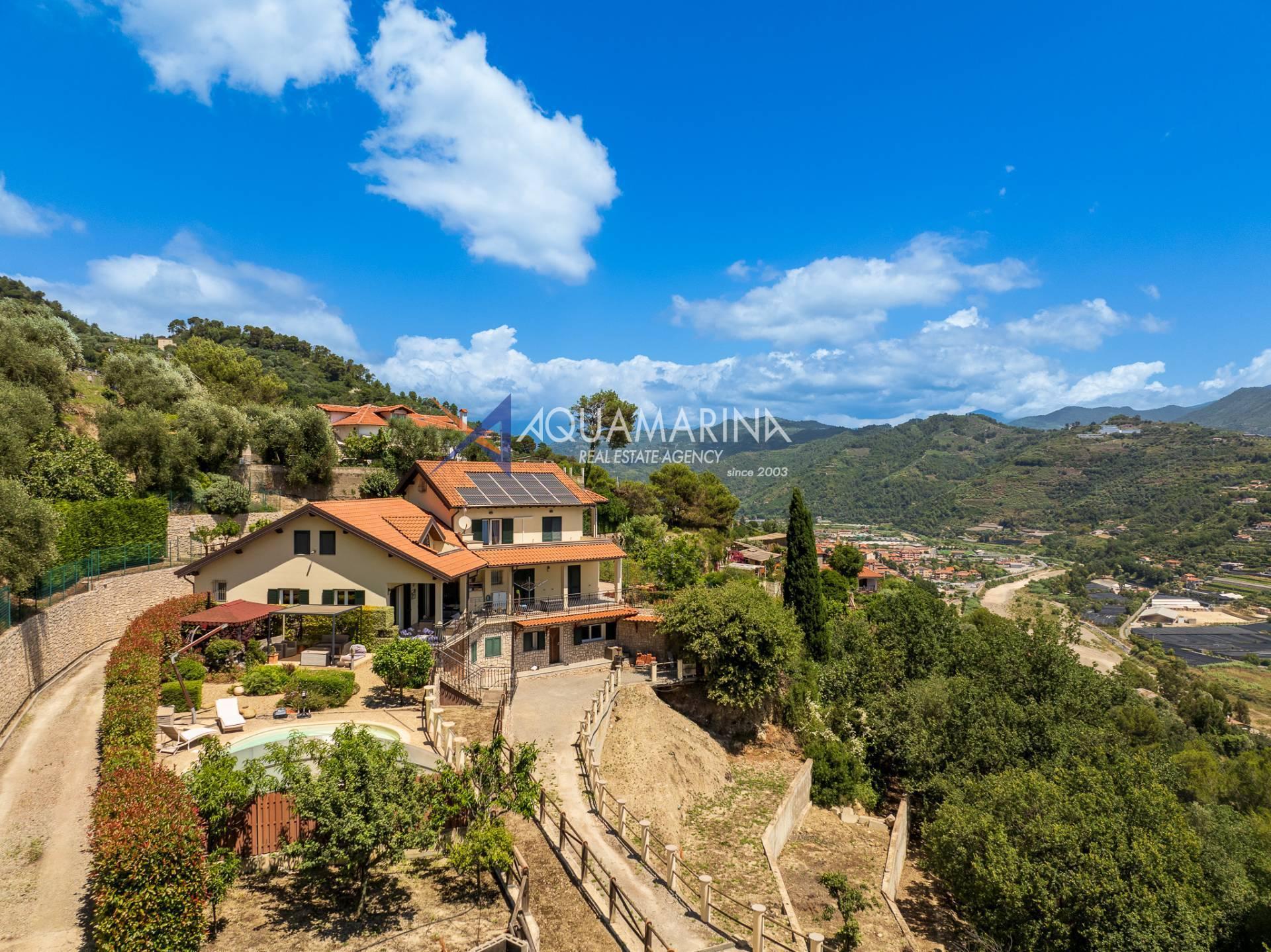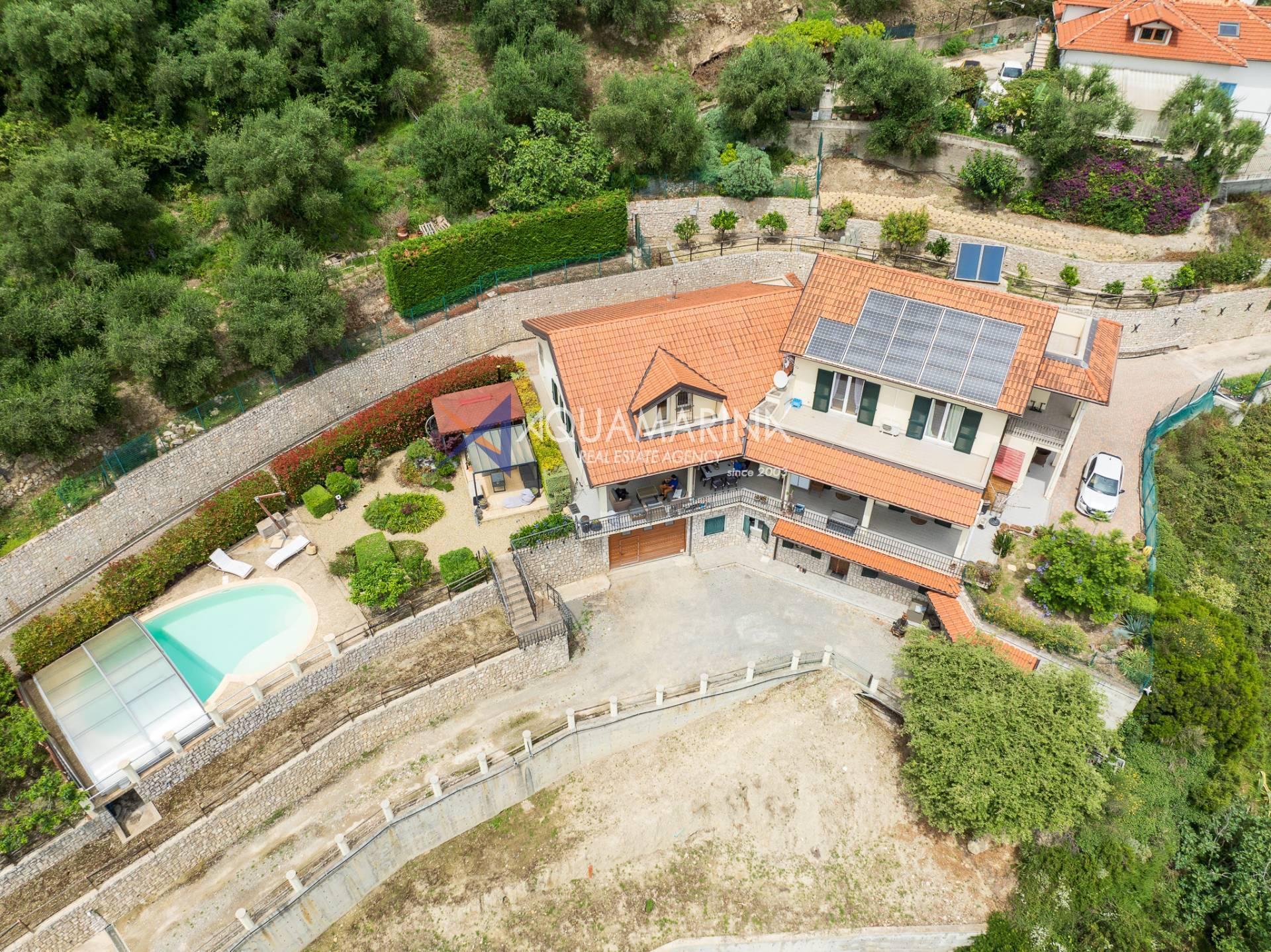 Кампороссо, всего в нескольких минутах от центра и пляжей, мы предлагаем на продажу великолепную виллу с открытым видом на горы до самого моря, в настоящее время разделенную на три больших независимых апартамента.