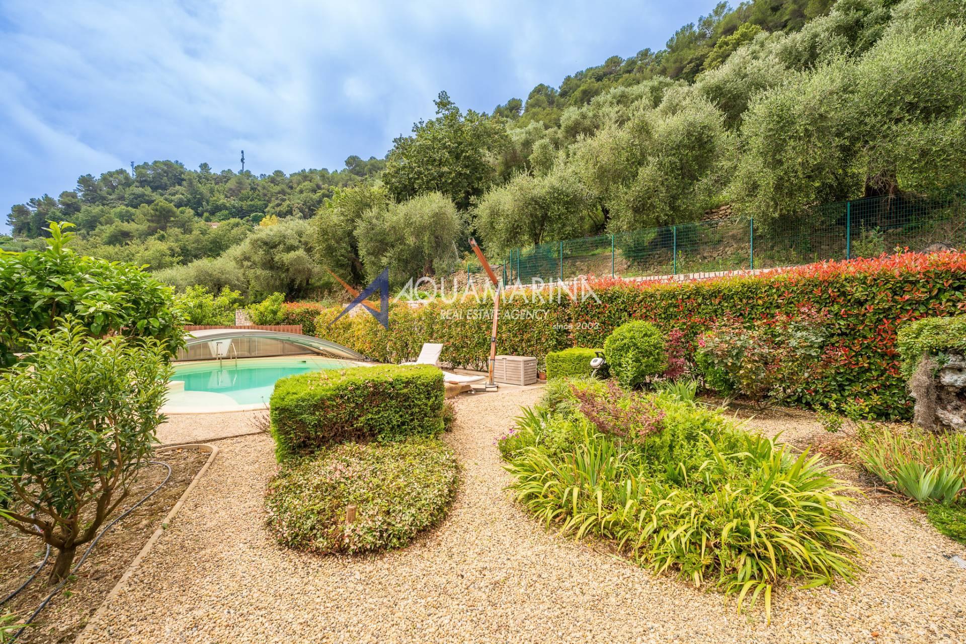 На задней части участка находится большой сад с большим бассейном и зоной для барбекю, чтобы наслаждаться приятными моментами на свежем воздухе в течение теплого сезона.