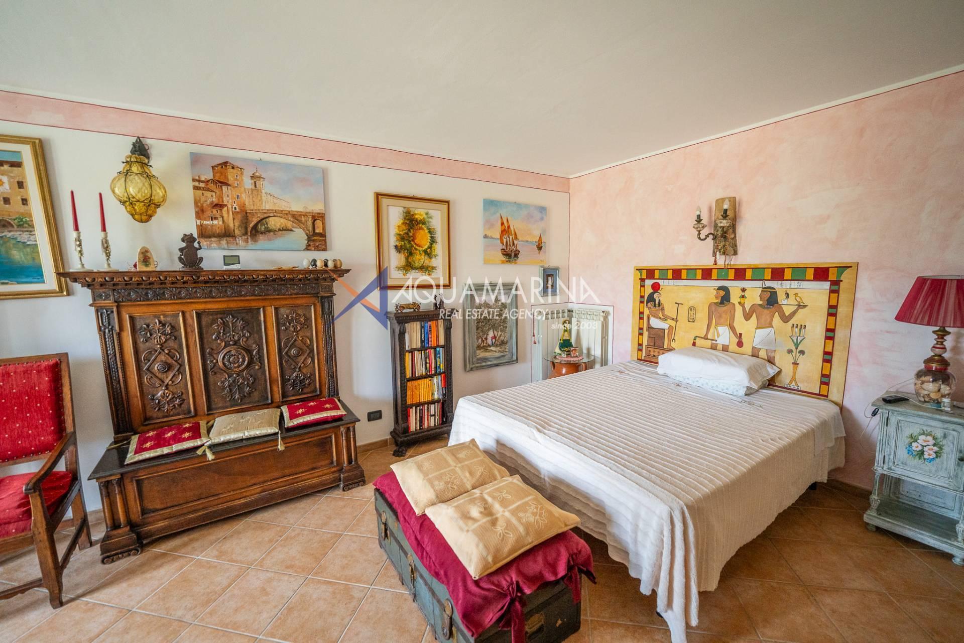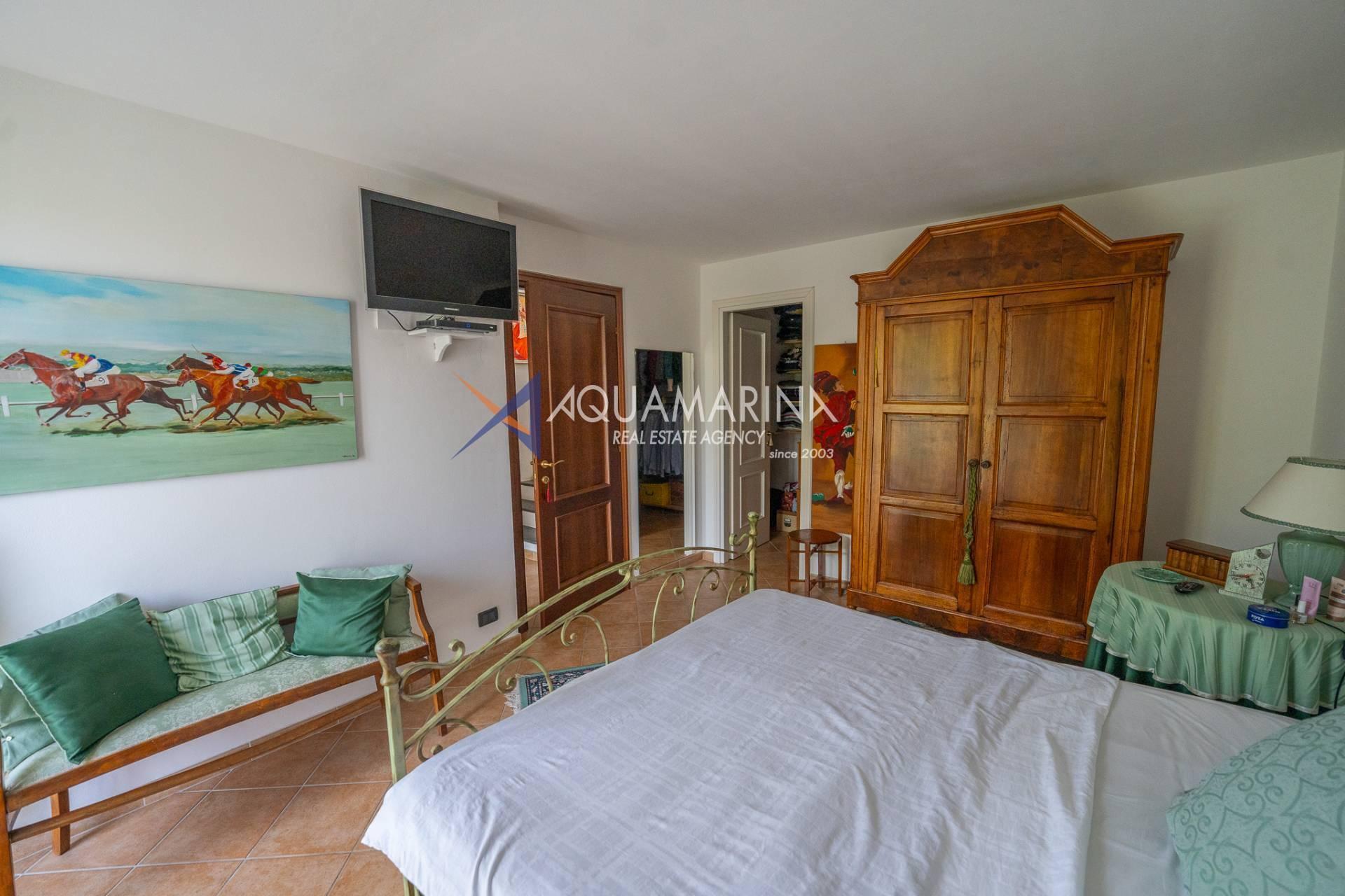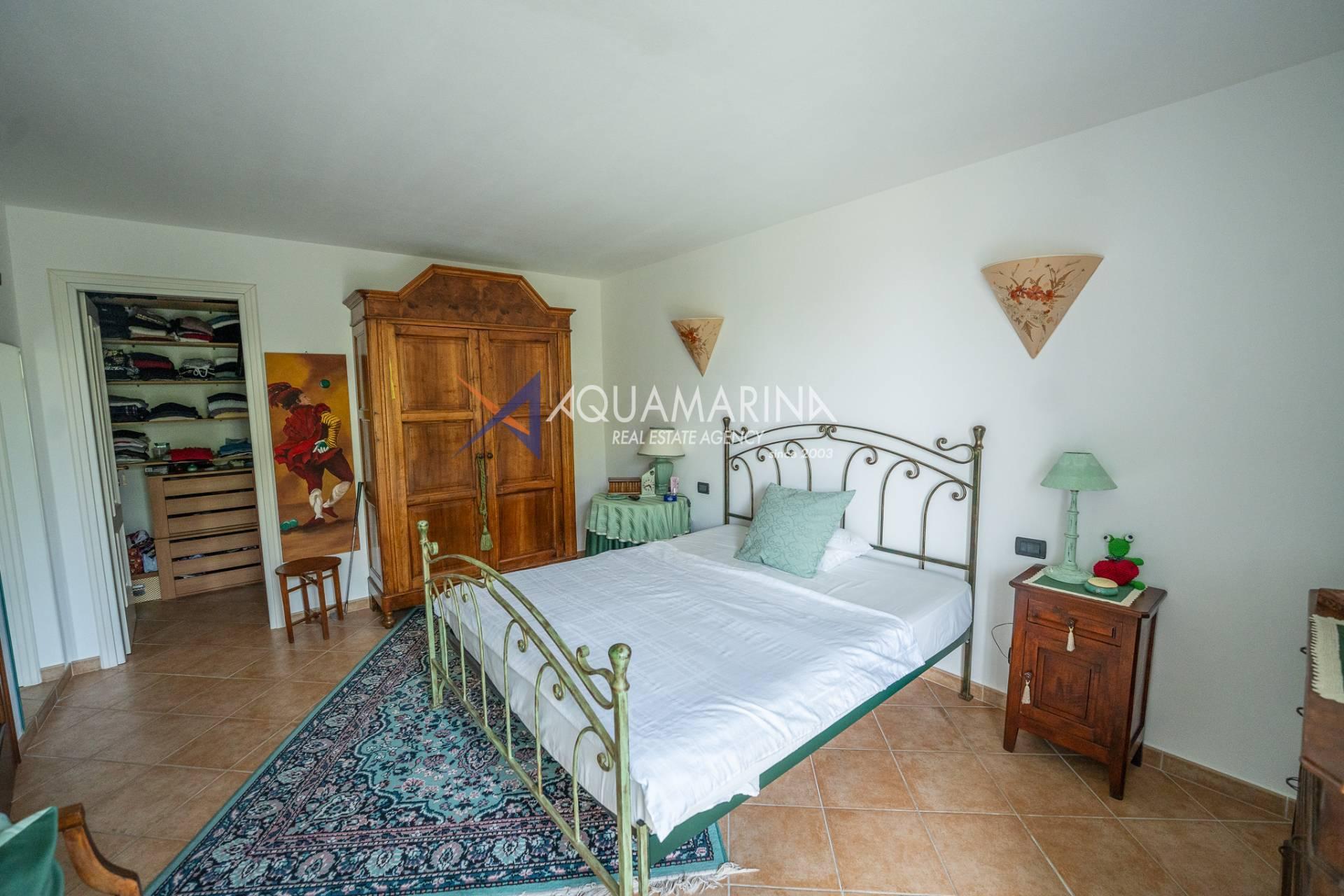 Спустившись на первый этаж, пространство разделено на спальню/кабинет, спальню с двуспальной кроватью и большой гардеробной, функциональную спальню, главную ванную комнату с ванной и душем, из которой открывается великолепный вид на море, и, наконец, дополнительную главную спальню с французскими окнами, которые пропускают много света и открывают вид на зелень.
