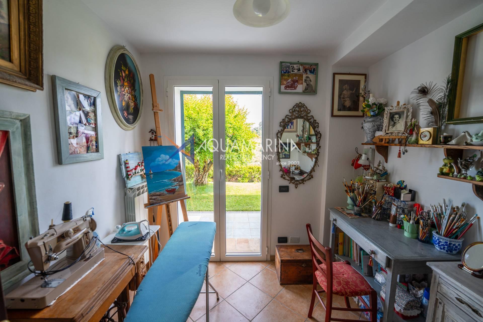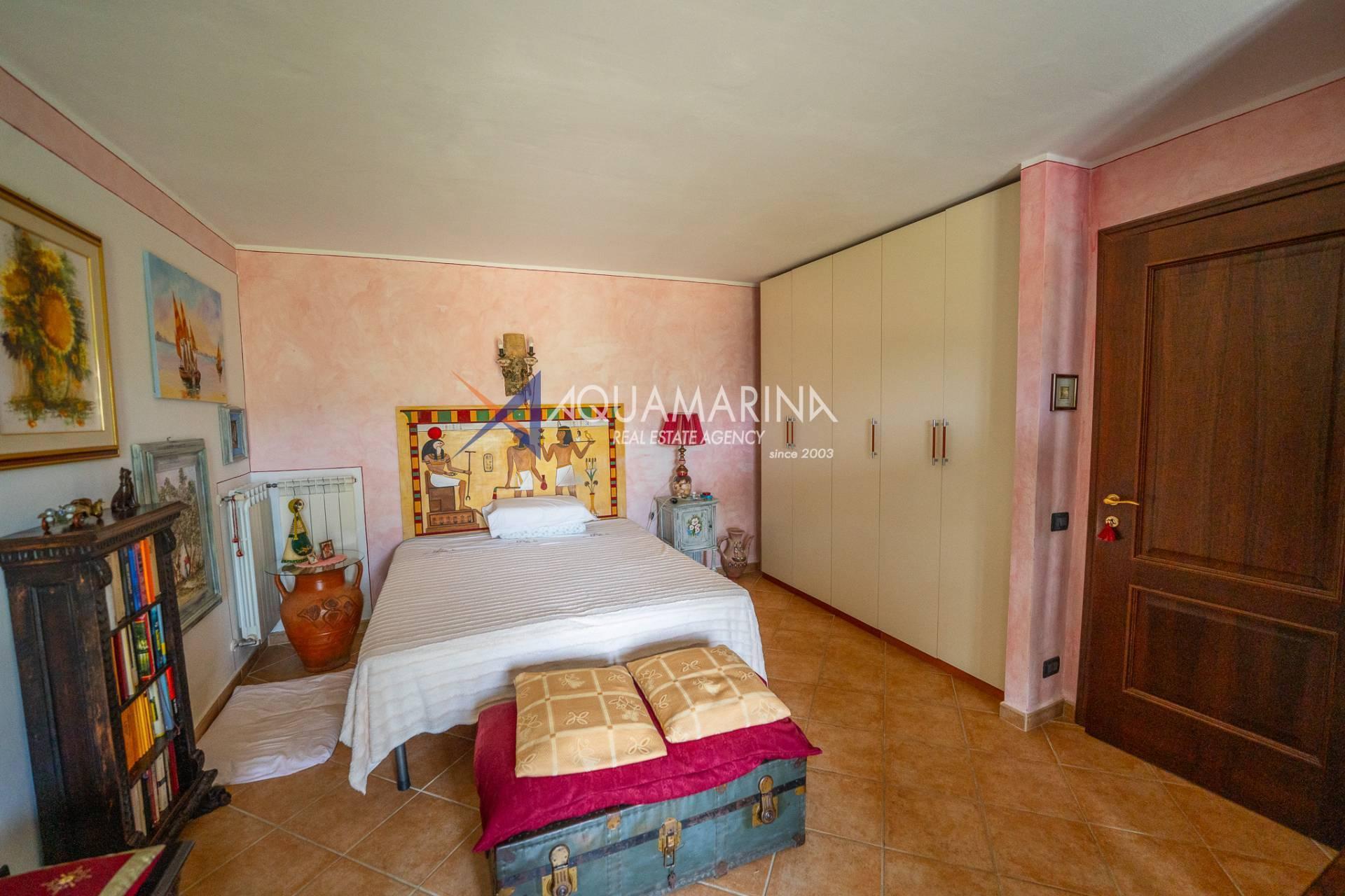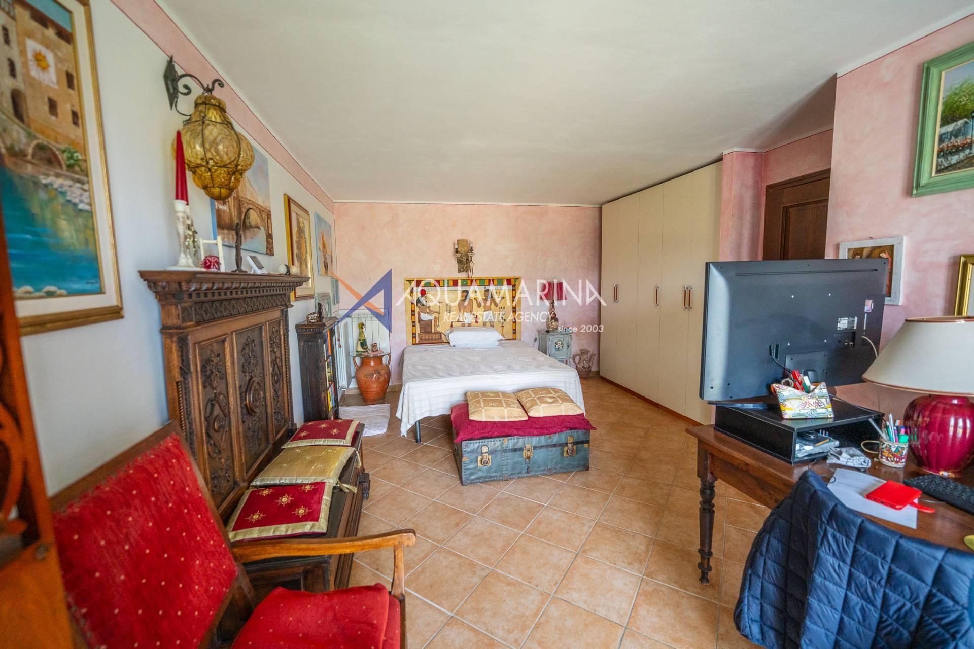 Спустившись на первый этаж, пространство разделено на спальню/кабинет, спальню с двуспальной кроватью и большой гардеробной, функциональную спальню, главную ванную комнату с ванной и душем, из которой открывается великолепный вид на море, и, наконец, дополнительную главную спальню с французскими окнами, которые пропускают много света и открывают вид на зелень.