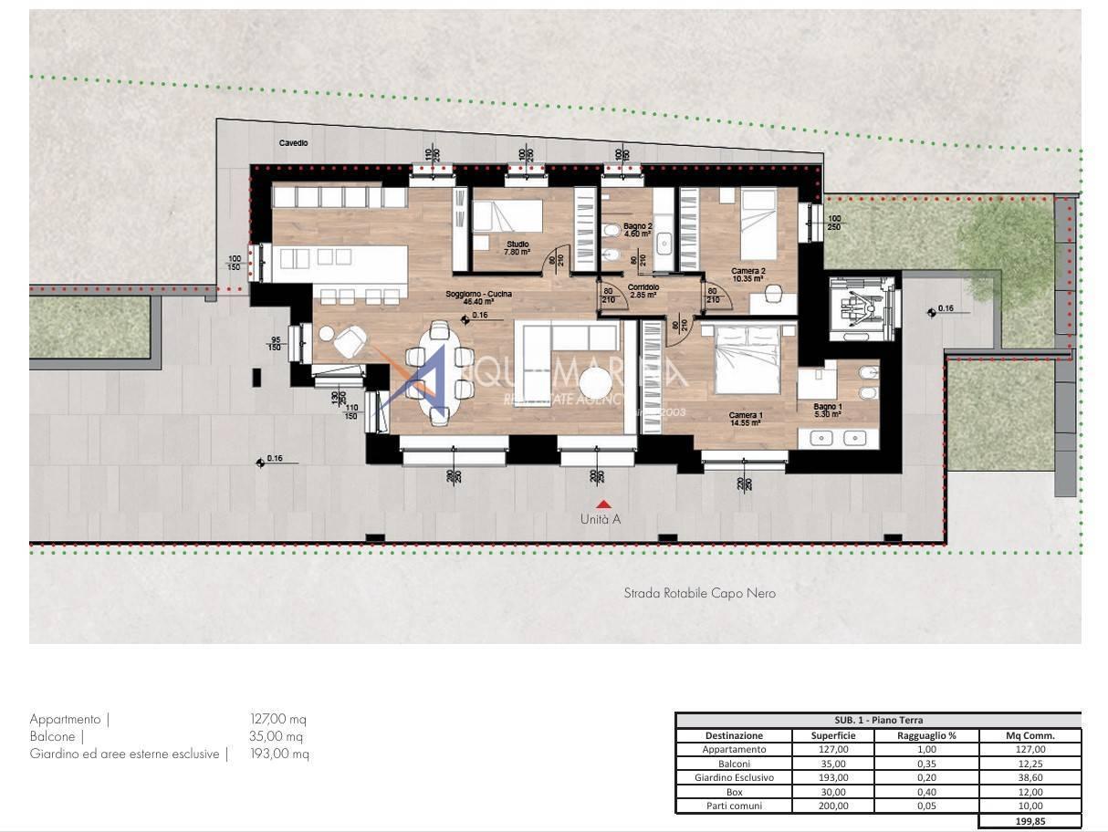 Сан-Ремо, район Капо Неро, предлагается на продажу просторная квартира площадью 127 кв.м на первом этаже в недавно отреставрированном комплексе с великолепным видом на море.