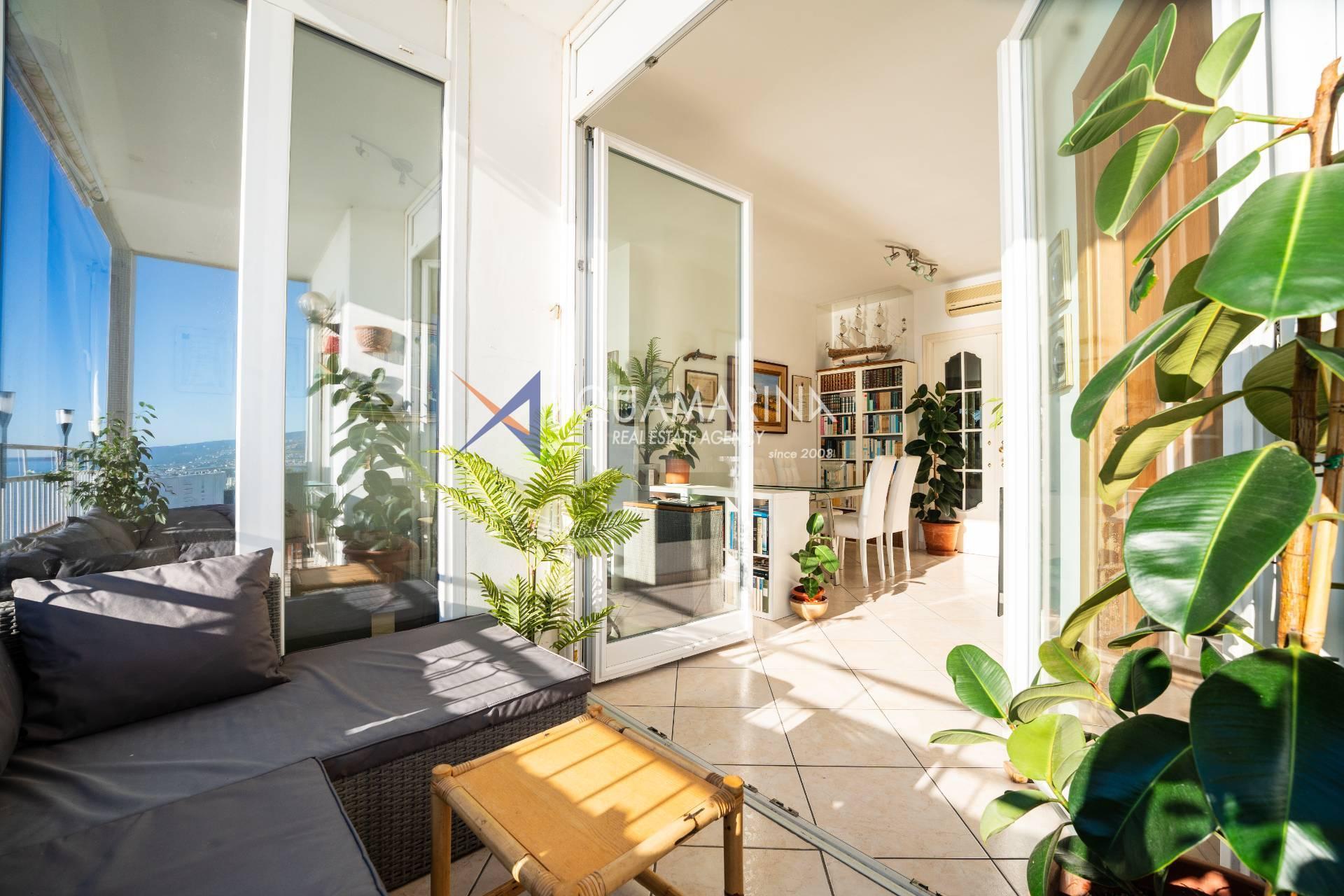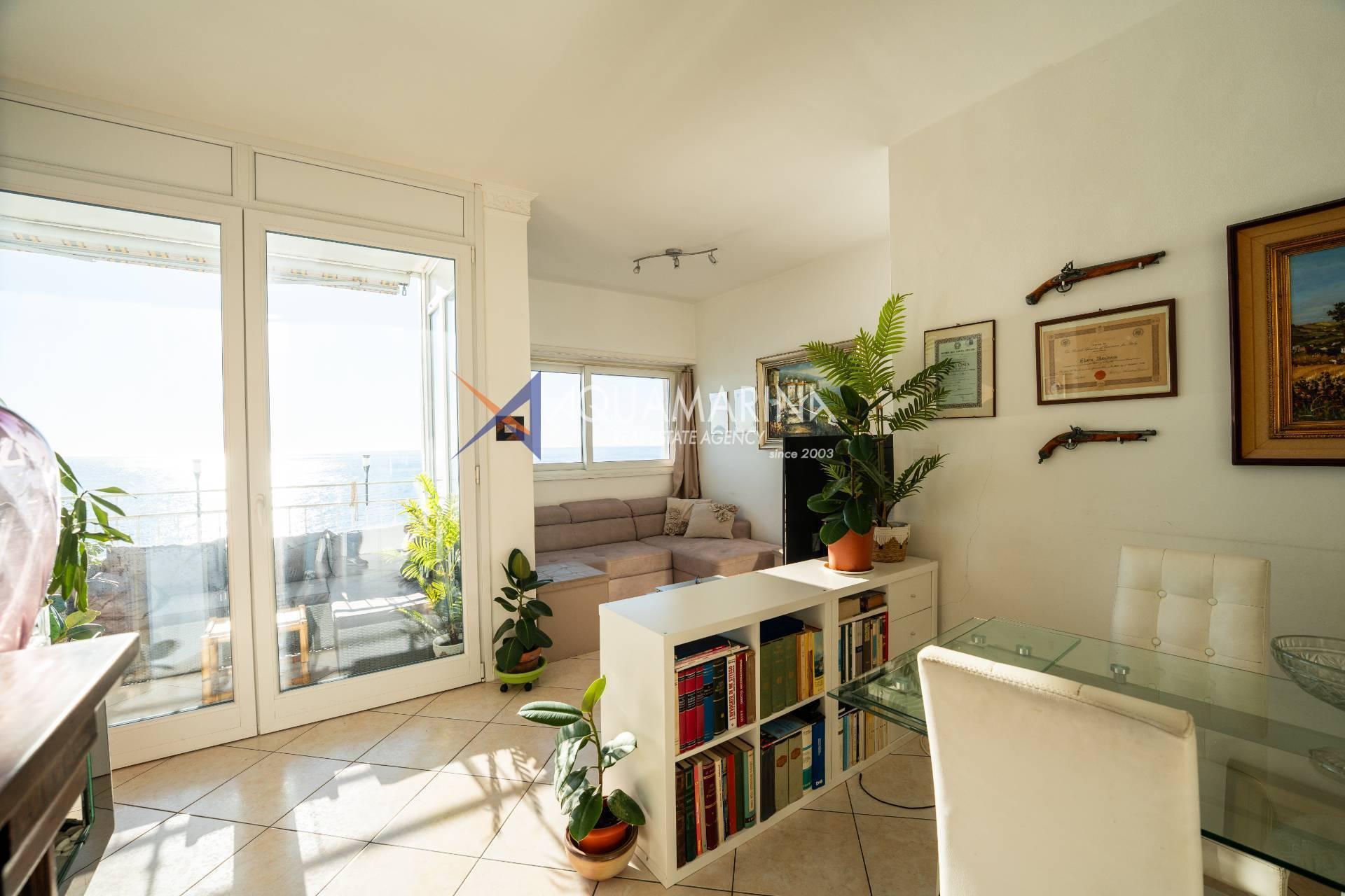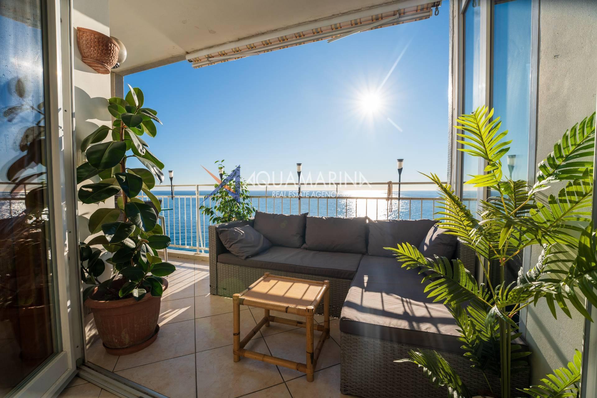 Сан-Ремо, квартира с видом на море. Продаётся квартира на 5 этаже с лифтом, практически на первой линии моря, с захватывающим дух видом. Из квартиры открывается панорамный вид на Капо-Неро, одно из самых живописных мест Ривьеры-ди-Поненте. Благодаря удачному расположению и большим окнам, квартира залита естественным светом, а большая терраса позволяет наслаждаться бесценным видом, одновременно расслабляясь в полном спокойствии, практически посреди моря. Квартира состоит из прихожей, кухни открытой планировки с кладовой и окном с видом на море, двойной гостиной с окном, выходящим на море, и выходом на террасу, двух спален с видом на море и выходом на террасу, ванной комнаты с окном, второго туалета, большой террасы, балкона и подвала. Отопление автономное, с подвесным камином и тепловым насосом, который обогревает и охлаждает квартиру. Внешние окна изготовлены из ПВХ с двойным остеклением.