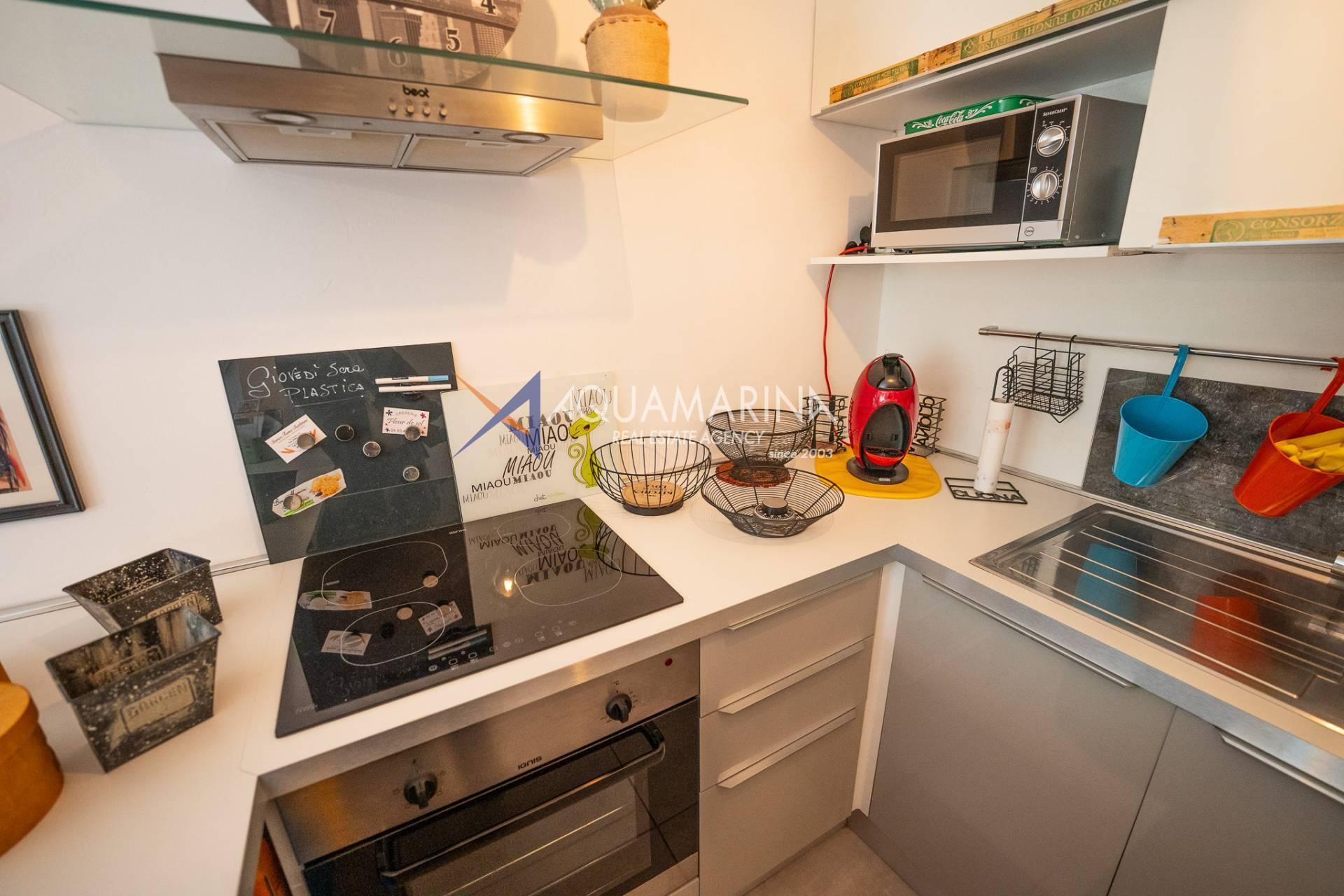 Санремо, двухкомнатная квартира с террасой, частным парковочным местом и подвалом