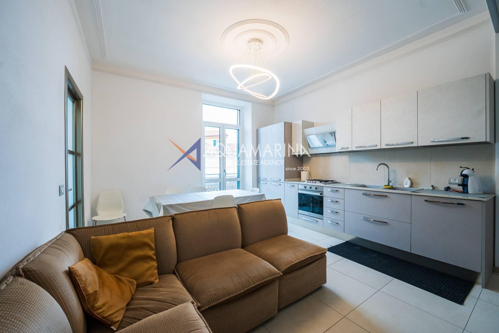 Sanremo, самый центральный район, мы предлагаем на продажу четырехкомнатную квартиру на втором этаже без лифта старинного здания, полностью отремонтированную и состоящую из прихожей, гостиной с открытой кухней, двух спален с двуспальными кроватями, спальни с односпальной кроватью, двух ванных комнат и двух ванных комнат. балконы.