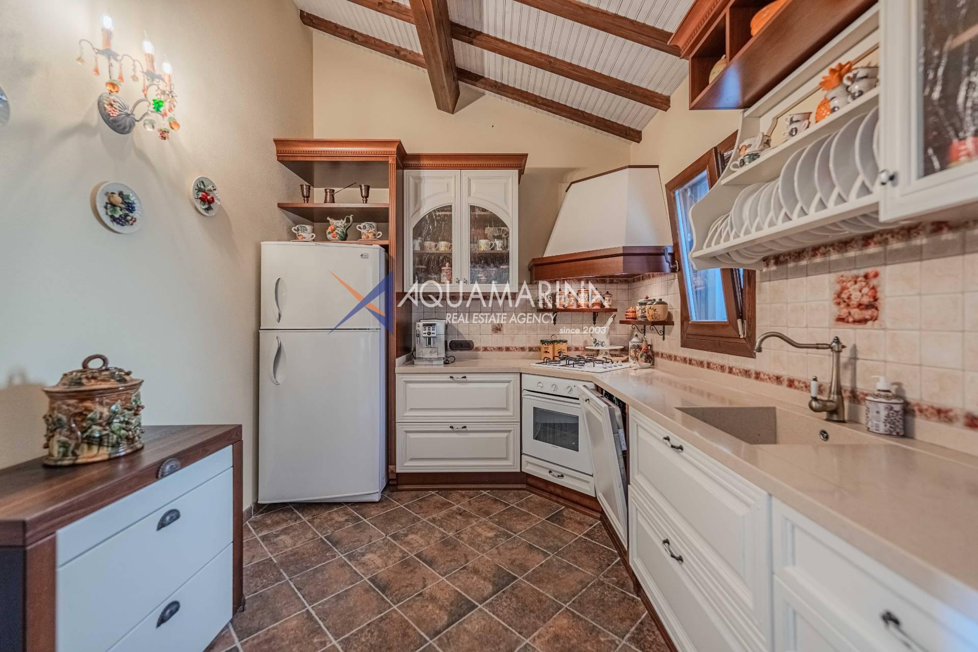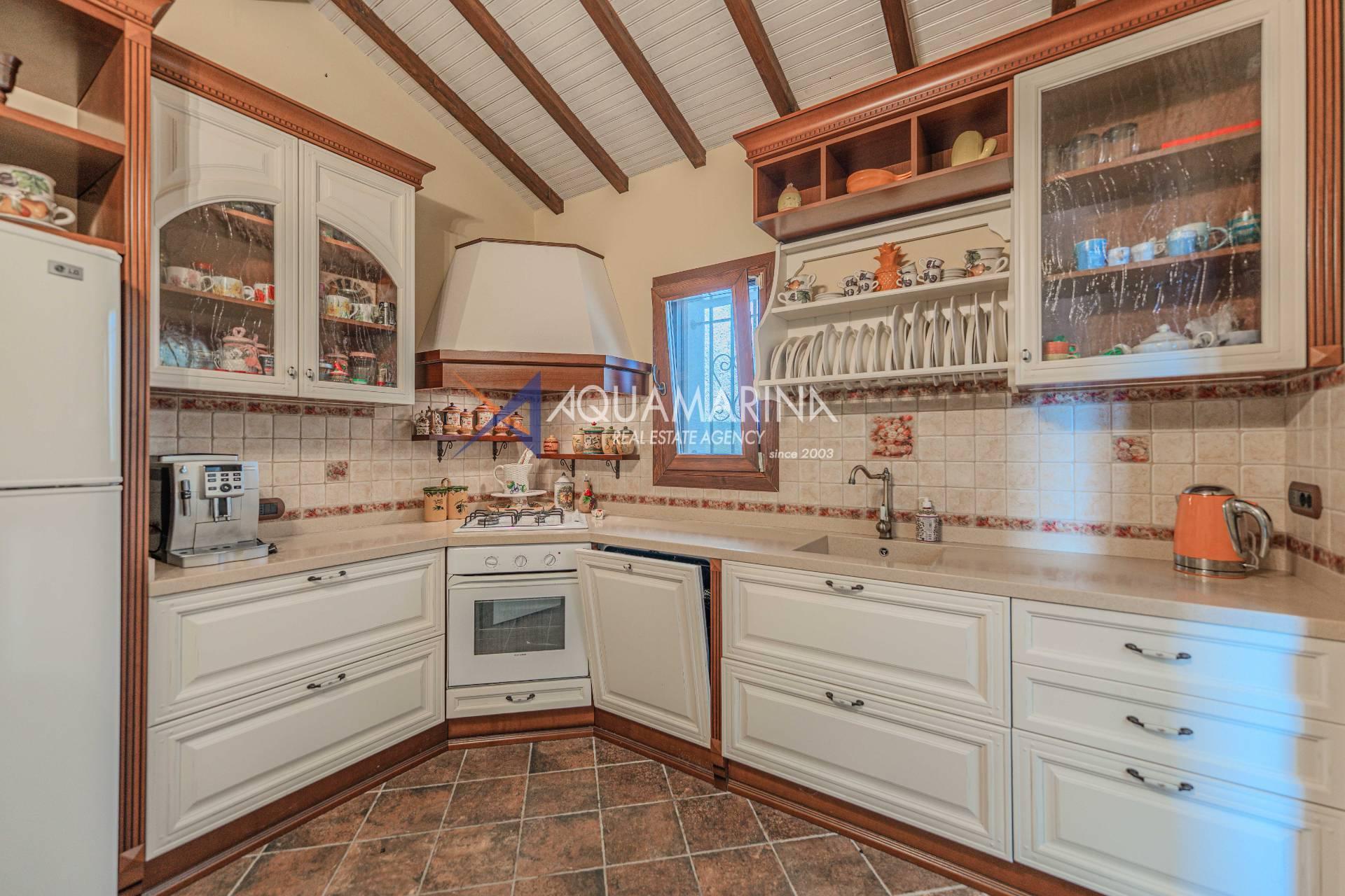 На участке площадью около 2900 м² растут фруктовые деревья и оливковая роща, имеется автоматическая система полива.