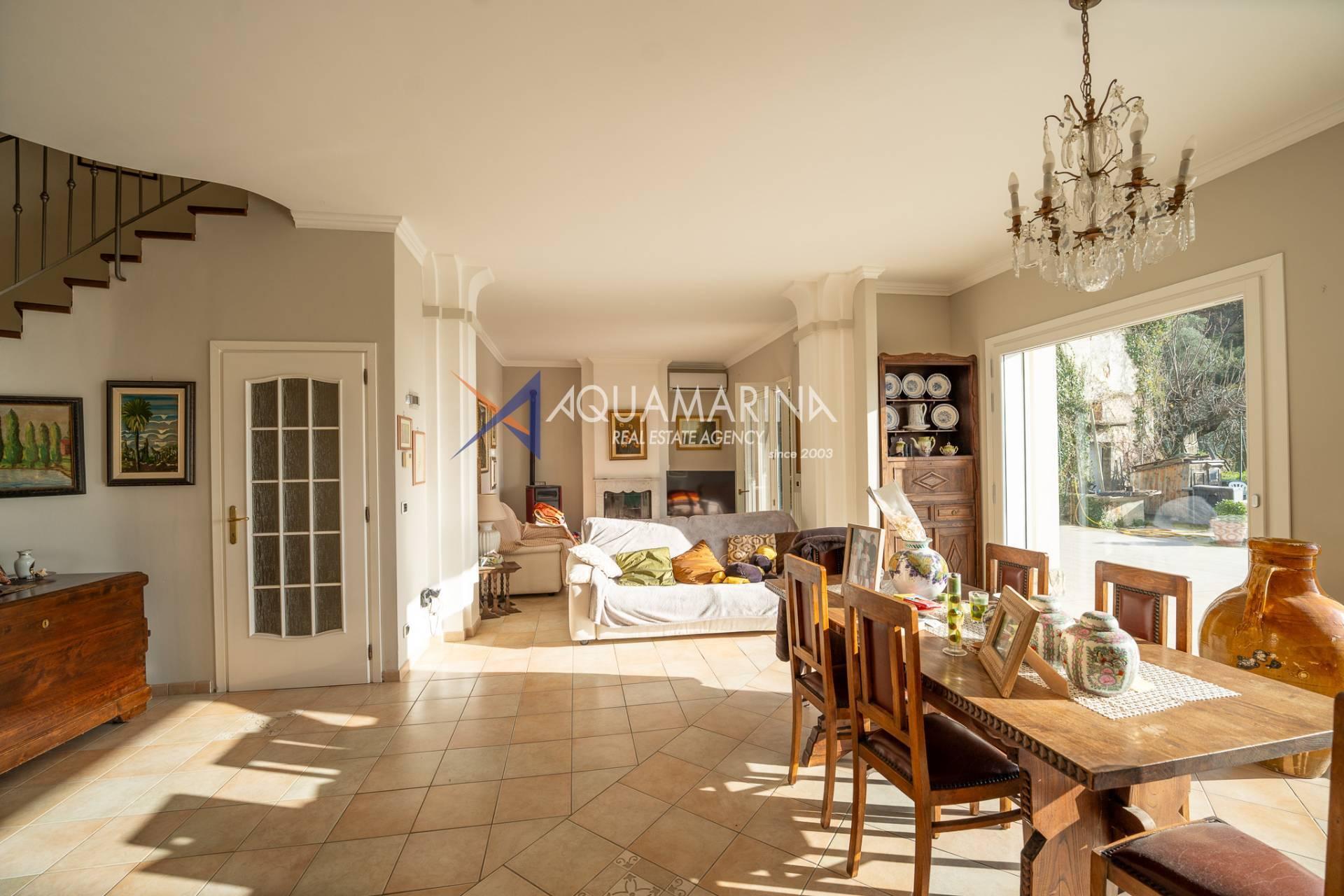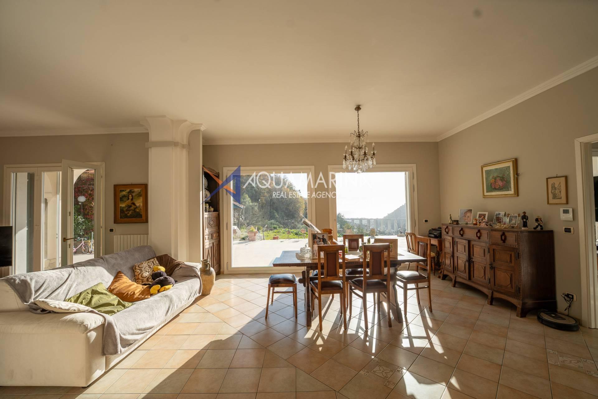 В живописных холмах Валлекрозии, в тихом и солнечном месте, предлагается к продаже отдельная вилла современной постройки (2000 год), окружённая зеленью и с великолепным открытым панорамным видом и видом на море.