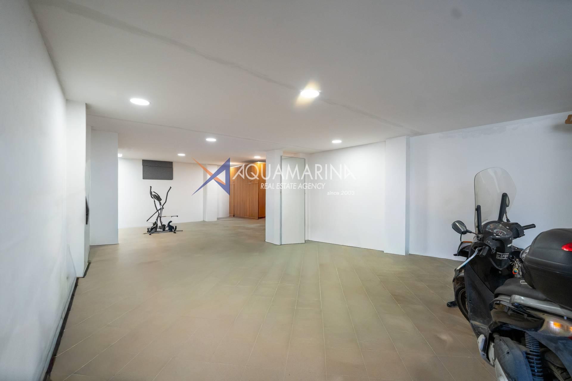 Нижний этаж включает большое складское помещение, гараж, одну спальню, ванную комнату и прачечную, что делает пространство удобным и универсальным, в том числе для гостей или автономного использования.