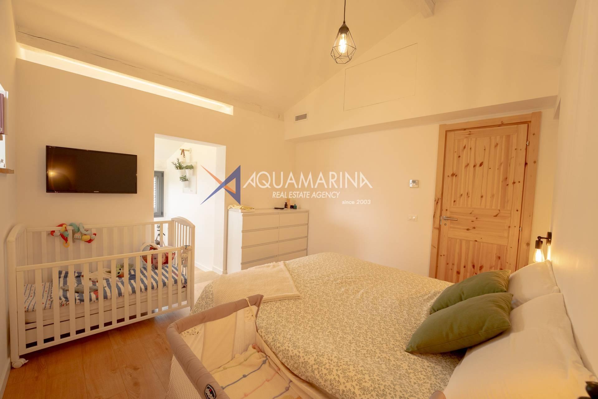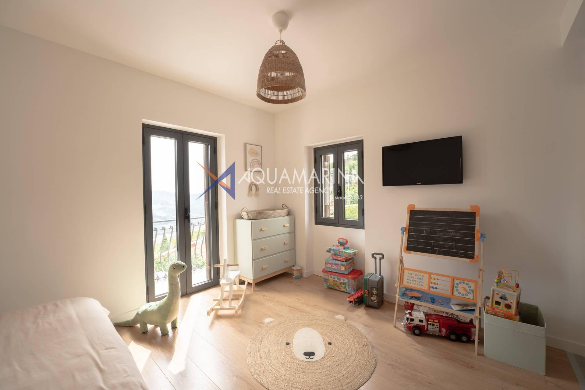 Пеллетная печь, тепловой насос, двойные стеклопакеты, москитные сетки, алюминиевые ставни. Панорамный вид и вид на море. Дом легко разделить на две независимые части, что делает его идеальным вариантом для гостевого дома или, при желании, для двух семей.